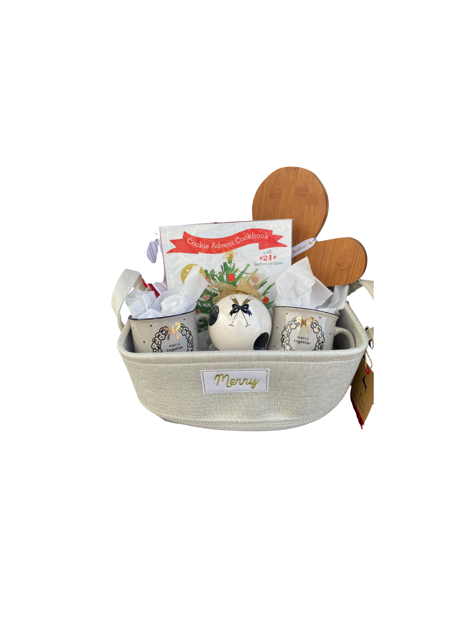 The perfect gift for the newly weds in your life! This basket is sure to brighten their holidays and get them in the mood to decorate their home for their first holiday season as Mr. & Mrs.
